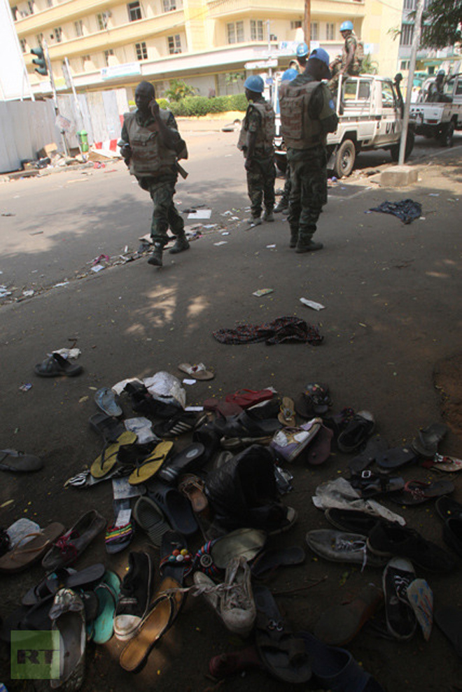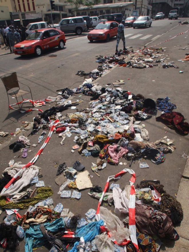 Κατά τις πρωινές ώρες μία θάλασσα από παπούτσια και παρατημένα ρούχα παρέμεναν ακόμη στο σημείο ως σημάδια για το δράμα που εξελίχθηκε τις προηγούμενες ώρες, ενώ στο σημείο είχαν αναπτυχθεί αστυνομικοί και στρατιώτες, όπως και μέλη του εκστρατευτικού σώματος του ΟΗΕ στην Ακτή Ελεφαντοστού (Onuci).