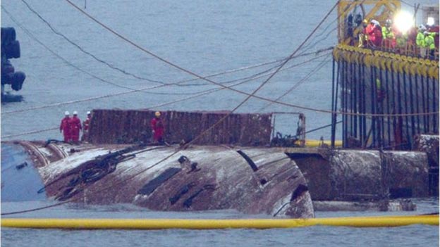 Αυτός ο πολύπλοκος ελιγμός –μία από τις πιο σημαντικές επιχειρήσεις ναυαγιαίρεσης ενός ολόκληρου πλοίου που έχουν διεξαχθεί ποτέ– πραγματοποιείται καθώς πλησιάζει η τρίτη επέτειος της καταστροφής. Το οχηματαγωγό είχε βυθιστεί στις 16 Απριλίου 2014 στα ανοικτά της νήσου Τζίντο (νοτιοδυτική Νότια Κορέα), σε μια από τις χειρότερες ναυτικές τραγωδίες στην ιστορία της χώρας.