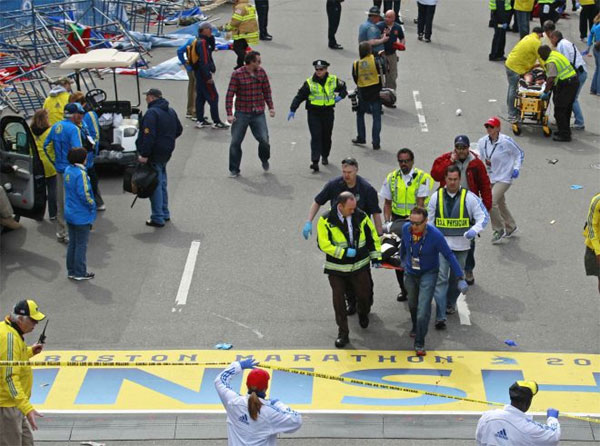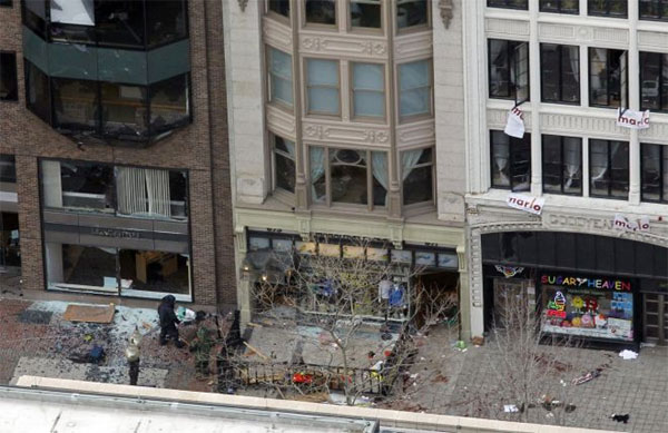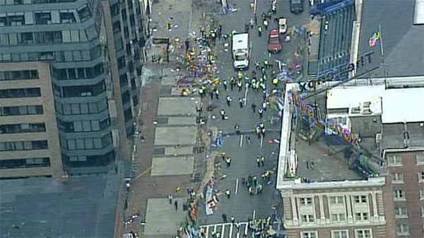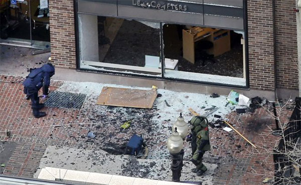 Δύο εκρηκτικοί μηχανισμοί εξερράγησαν με 10 δευτερόλεπτα διαφορά ο ένας από τον άλλο κοντά στη γραμμή τερματισμού του ετήσιου μαραθωνίου της Βοστώνης. Ένας τρίτος εκρηκτικός μηχανισμός εξερράγη λίγο μακρύτερα, μπροστά από την βιβλιοθήκη JFK, ενώ σύμφωνα με δημοσίευμα της «Wall Street Journal» τουλάχιστον πέντε εκρηκτικοί μηχανισμοί εντοπίστηκαν και απενεργοποιήθηκαν από ομάδα πυροτεχνουργών.