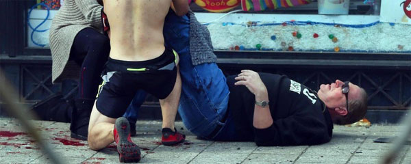 (Πεσμένος αθλητής στο έδαφος λίγο μετά την έκρηξη)