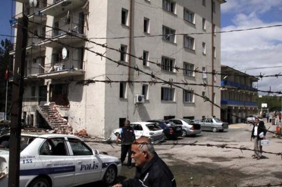 Ισχυρή έκρηξη σημειώθηκε σήμερα το πρωί έξω από το Αστυνομικό Τμήμα της Καισάρειας στην Τουρκία, με αποτέλεσμα ένας αστυνομικός να χάσει τη ζωή του, όταν καμικάζι αυτοκτονίας επιχείρησαν να εισέλθουν στο κτήριο με το αυτοκίνητό τους.