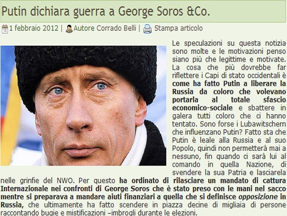 Όλα ξεκίνησαν έπειτα από δημοσίευμα της ιταλικής εφημερίδας «Stampa Libera», σύμφωνα με το οποίο ο Πούτιν αποκαλεί τον Σόρος τρομοκράτη Χρηματιστή, που έχει σκοπό να επιτεθεί στη ρωσική χρηματιστηριακή αγορά με τη μη εξουσιοδοτημένη χρήση παραγώγων με ξένα νομίσματα.