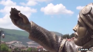 Ένα αμφιλεγόμενο άγαλμα Οθωμανού πρίγκιπα, που τοποθετήθηκε το περασμένο Σάββατο στην πόλη Αμάσεια της βόρειας Τουρκίας, βανδαλίστηκε λίγες ώρες μετά τα αποκαλυπτήριά του. Ο λόγος είναι ότι δεν πρόκειται για κάποιος συνηθισμένο άγαλμα κάποιας ξεχωριστής προσωπικότητας, αλλά για έναν… ανώνυμο πρίγκιπα ο οποίος βγάζει… selfie με το κινητό του!