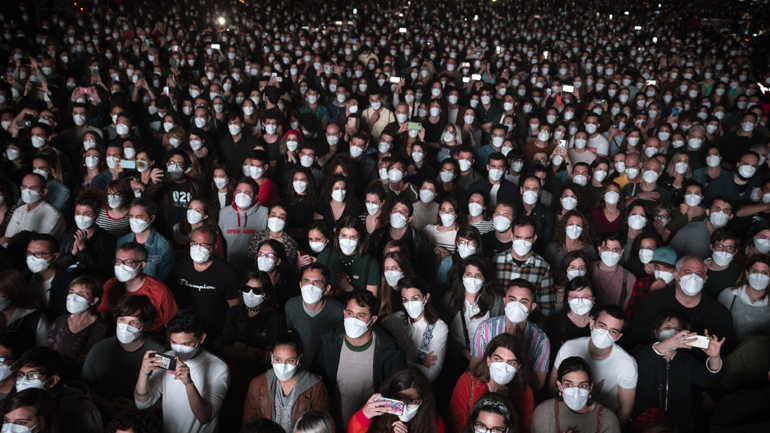 Σε σουρεαλιστικές σκηνές μετά από ένα χρόνο κοινωνικών αποστάσεων, οι φαν χόρεψαν ο ένας δίπλα στον άλλο, αλλά η θάλασσα από πρόσωπα καλυμμένα με μάσκες θύμιζε πως η κατάσταση απέχει από μια επιστροφή στην κανονικότητα.
