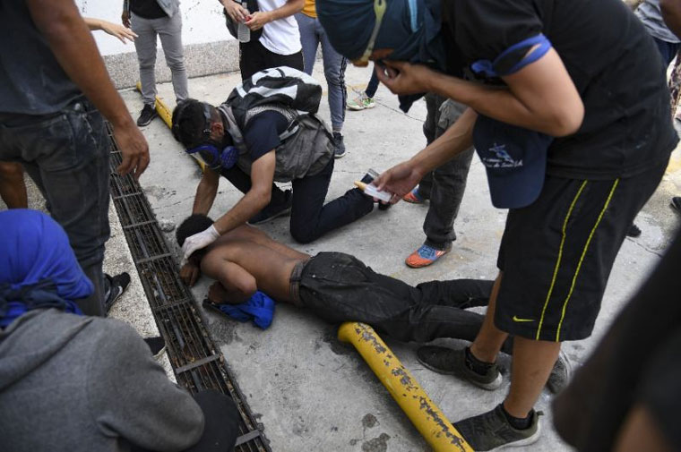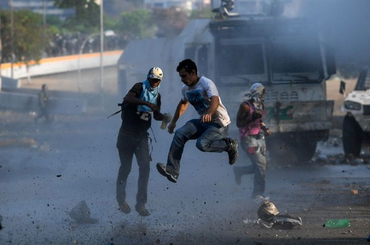 Οι διαδηλωτές, αρκετοί με καλυμμένα τα πρόσωπα, άρχισαν να πετούν πέτρες και κοκτέιλ μολότοφ εναντίον ανδρών της μπολιβαριανής εθνικής φρουράς (GNB), ενός Σώματος παρόμοιου με τη χωροφυλακή, που είναι αρμόδιο για την επιβολή της τάξης, που αντέδρασαν κάνοντας χρήση δακρυγόνων.