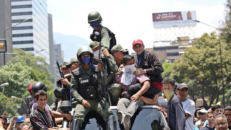 Ήταν στην ίδια βάση όπου ο Γκουαϊδό υποστήριξε προχθές Τρίτη ότι εξασφάλισε την υποστήριξη μιας ομάδας στρατιωτικών και κάλεσε τον στρατό να στασιάσει, χωρίς επιτυχία.