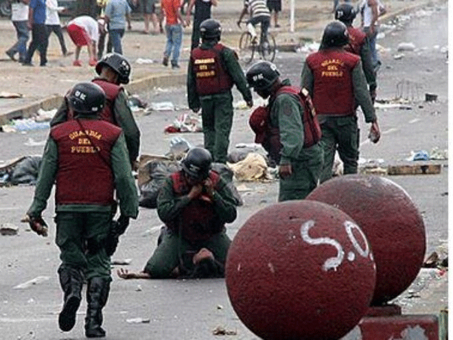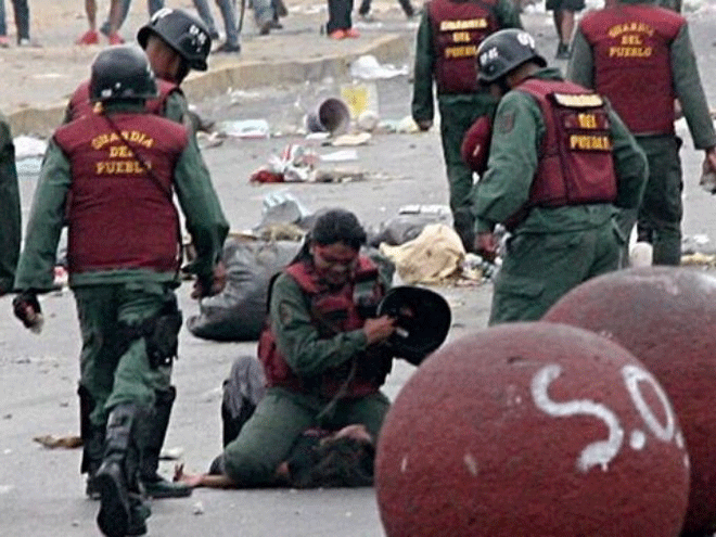 «Ο διάλογος του Μαδούρο συνίσταται στο εξής: «Ελάτε στο Μιραφλόρες (σ.σ. το προεδρικό μέγαρο) και ενόσω θα βγάζω διάγγελμα, θα κυνηγώ, θα σκοτώνω και θα καταστέλλω (τους διαδηλωτές) στους δρόμους», πρόσθεσε.