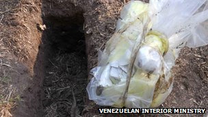 Δυνάμεις Ασφαλείας στη Βενεζουέλα εντόπισαν 555.000 δολάρια μέσα σε πλαστικές σακούλες, οι οποίες ήταν θαμμένες στο έδαφος κοντά στα σύνορα με την Κολομβία, μετέδωσε το βρετανικό τηλεοπτικό δίκτυο BBC.