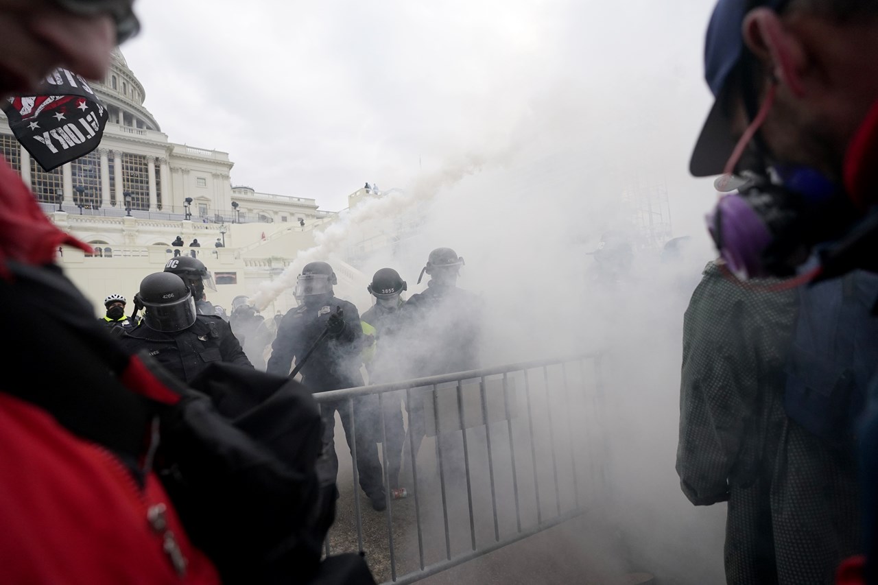 Εικόνες που μετέδωσε το τηλεοπτικό δίκτυο C-SPAN δείχνουν να πέφτουν δακρυγόνα μέσα στο κτήριο του Καπιτώλιου.