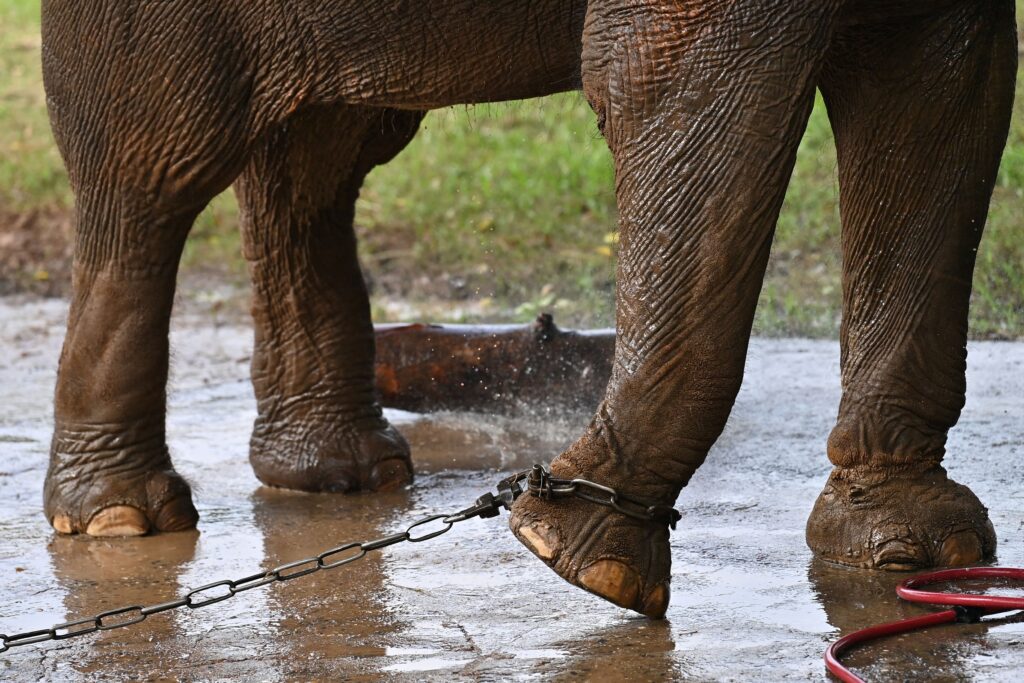 Το πρωί της Τετάρτης 16/8, τα πόδια του ζευγαριού ήταν αλυσοδεμένα καθώς οι φύλακες του ζωολογικού κήπου τα τάιζαν με γρασίδι και ζαχαροκάλαμο, παρατήρησαν οι δημοσιογράφοι του AFP.