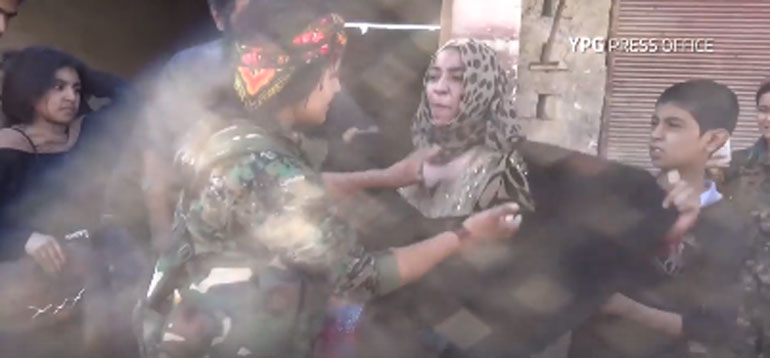 Η περιοχή που βρίσκεται το σπίτι της απελευθερώθηκε από τους τζιχαντιστές και η γυναίκα δείχνει να βρίσκεται σε κατάσταση απόλυτης και έξαλλης χαράς. Εικονίζεται να φιλά το χώμα και στη συνέχεια φιλά τους μαχητές που συμμετέχουν στην επιχείρηση απελευθέρωσης της αποκαλούμενης πρωτεύουσας του ISIS.