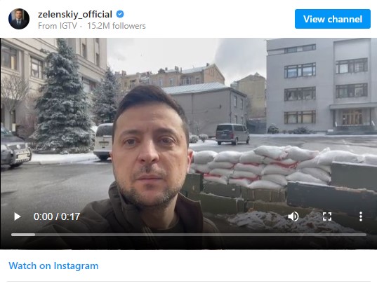 Μέσω του Instagram, ο πρόεδρος Ζελένσκι δημοσίευσε βίντεο την Τρίτη που δείχνει ότι βρίσκεται στην ουκρανική πρωτεύουσα...