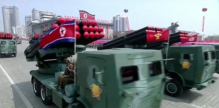 Η βορειοκορεάτικη κρατική τηλεόραση μετέδωσε πλάνα στα οποία εικονίζονται οι πύραυλοι Pukkuksong-2 πάνω σε φορτηγά, που θα πάρουν μέρος στην παρέλαση υπό το βλέμμα του ηγέτη της χώρας Κιμ Γιονγκ Ουν.