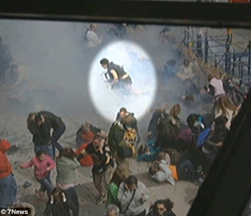 Ήδη, σύμφωνα με το τηλεοπτικό δίκτυο 7News, έχουν δοθεί στη δημοσιότητα τρεις φωτογραφίες που δείχνουν έναν άνδρα, ντυμένο στα μαύρα, να κινείται ύποπτα λίγο μετά την πυροδότηση του πρώτου εκρηκτικού μηχανισμού.