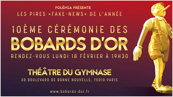 Το βραβείο «Bobards d’Or» (Χρυσή Απάτη) απονεμήθηκε στην παραδοσιακή τελετή που γίνεται κάθε χρόνο για μερικά από τα πιο γελοία, ψεύτικα ειδησεογραφικά δελτία της προηγούμενης χρονιάς που οργανώνει το Ίδρυμα δεξαμενών σκέψης «Polemia» στον γαλλικό τηλεοπτικό σταθμό.