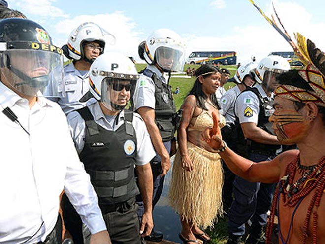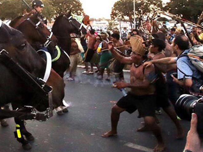 Νέα διαδήλωση κατά του Μουντιάλ σημειώθηκε στην πρωτεύουσα Μπραζίλια αυτή την φορά από τους αυτόχθονες της χώρας οι οποίοι ενεπλάκησαν σε επεισόδια με έφιππους αστυνομικούς. Οι ομάδες ιθαγενών διαμαρτύρονται για την οριοθέτηση της γης τους.
