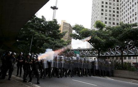 Μονάδες αντιμετώπισης ταραχών της αστυνομίας της Βραζιλίας έκαναν εκτεταμένη χρήση δακρυγόνων και χειροβομβίδων κρότου-λάμψης την Παρασκευή για να διαλύσουν μια ομάδα βίαιων διαδηλωτών στο περιθώριο της κινητοποίησης εναντίον της αύξησης των εισιτηρίων των μέσων μαζικής μεταφοράς στη μεγαλύτερη πόλη της λατινοαμερικάνικης χώρας, το Σάο Πάολο.