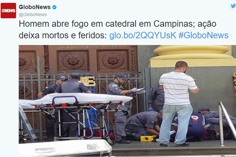 Ένας ένοπλος εισήλθε σε καθεδρικό ναό στην πόλη Καμπίνας της Βραζιλίας, πυροβολώντας και σκοτώνοντας τέσσερις ανθρώπους την ώρα της Θείας Λειτουργίας πριν ανέβει στην Αγία Τράπεζα, στρέψει το όπλο στον εαυτό του και αυτοκτονήσει, ανέφεραν αξιωματούχοι των πυροσβεστικών δυνάμεων.