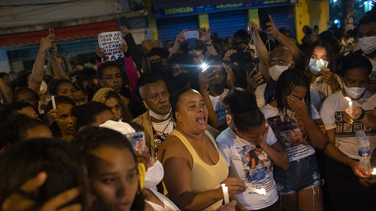 Στην πορεία που έγινε στο Ρίο ντε Τζανέιρο, οι διαδηλωτές κρατούσαν κεριά και πλακάτ που ανέγραφαν συνθήματα όπως «Εναντίον της γενοκτονίας η εξέγερση είναι δίκαιη», «Μη σκοτώνεις εμένα, σκότωσε τον ρατσισμό», ή «Δικαιοσύνη για τη Ζακαρέζινιου», τη φαβέλα όπου έγινε η φονική επιδρομή της αστυνομίας. Σύμφωνα με την τελευταία, σκοπός της επιχείρησης που διεξήγαγε ήταν να εξαρθρωθεί συμμορία που στρατολογούσε παιδιά και εφήβους για να διακινούν ναρκωτικά, να διαπράττουν κλοπές, απαγωγές και δολοφονίες.
