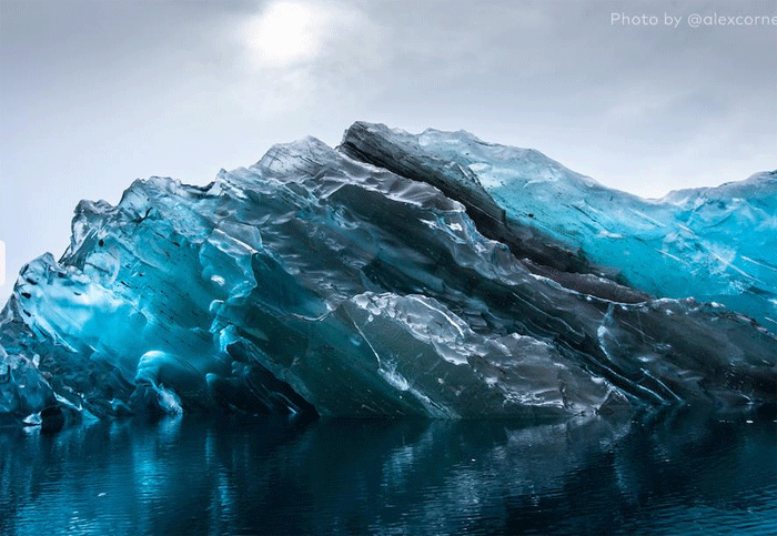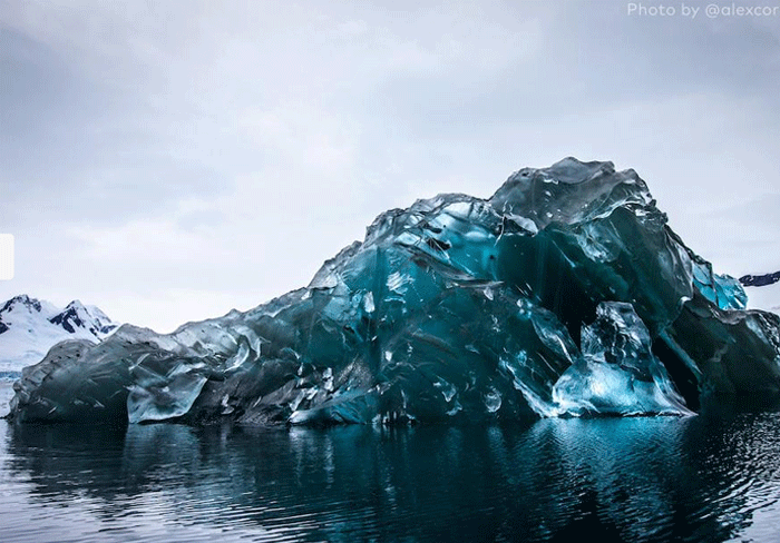 Το χαρακτήρισε μάλιστα εξωγήινο, αφού δεν έμοιαζε σε τίποτα με τα άλλα πάλλευκα παγόβουνα που έχουμε συνηθίσει. Μπλε ηλεκτρίκ σαν πολυεστιακός καθρέπτης ήταν ένα φαινόμενο μοναδικής ομορφιάς για τον φωτογράφο.