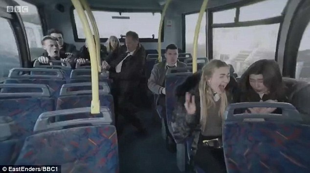 Ακούγονται ουρλιαχτά τόσο από τους πεζούς που προσπαθούν να σωθούν όσο και από τους επιβάτες του λεωφορείου. Το όχημα τελικώς προσκρούει σε μια γέφυρα.