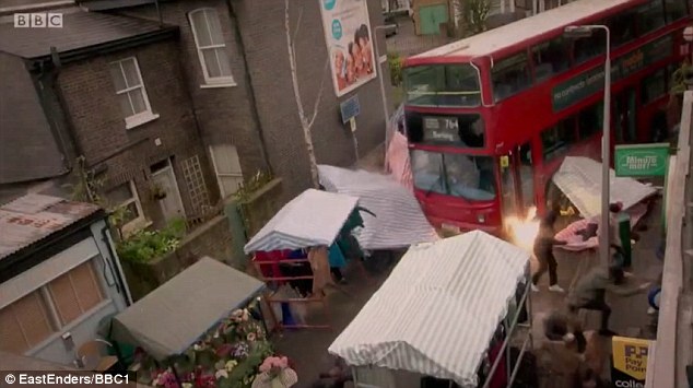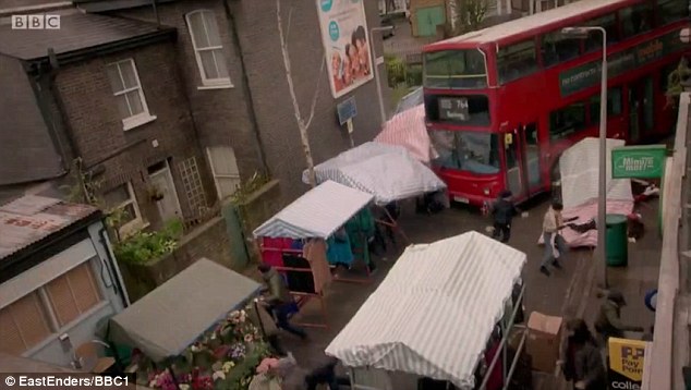 Στη σκηνή ένας οδηγός λεωφορείου χάνει τον έλεγχο του οχήματός του σε μια λαϊκή αγορά, με αποτέλεσμα να πέσει πάνω σε πλήθος περαστικών και να παρασύρει τα πάντα στο πέρασμά του.