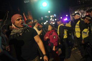 Η Μητροπολιτική Αστυνομία του Λονδίνου δήλωσε αργότερα ότι προχώρησε σε 82 συλλήψεις αντιδιαδηλωτών σε μια προσπάθεια διατήρησης της ειρήνης, καθώς ακροδεξιές οργανώσεις προσπάθησαν να πλησιάσουν στη συγκέντρωση υπέρ των Παλαιστινίων. Άλλες δέκα συλλήψεις έγιναν για άλλες παραβάσεις.