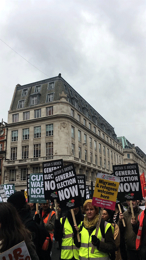 Η λιτότητα και το Brexit έχουν διαιρέσει το έθνος ανέφεραν στο ΑΠΕ-ΜΠΕ οι διοργανωτές της κινητοποίησης. «Ο αριθμός των άστεγων ανθρώπων έχει διπλασιαστεί», δήλωσε ο Στιβ Τέρνερ του συνδικάτου Unite. «Το Εθνικό Σύστημα Υγείας του NHS, η περίθαλψη και τα σχολεία έχουν υποστεί μεγάλες απώλειες από την κρίση» τόνισε ο Τέρνερ και πρόσθεσε: «Έχουμε να κάνουμε εδώ με μια κυβέρνηση που είναι εντελώς ξένη προς τις καθημερινές ανησυχίες των ανθρώπων».