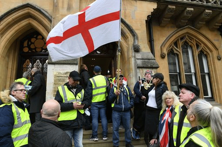 Διαδηλωτές, που φορούσαν κίτρινα γιλέκα, εισέβαλαν σήμερα στο γραφείο του Γενικού Εισαγγελέα της Βρετανίας, στο κέντρο του Λονδίνου.