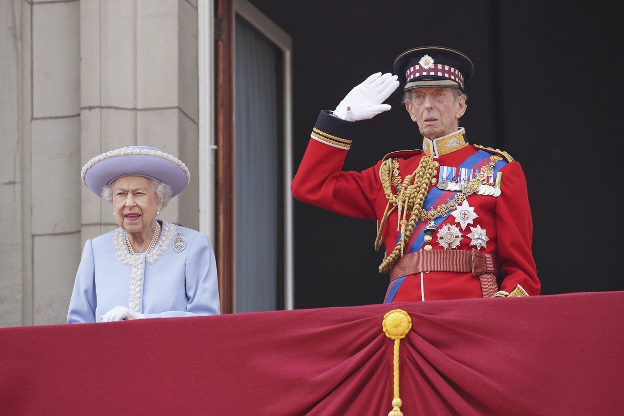 Η 96χρονη βασίλισσα, ντυμένη μ’ ένα σύνολο χρώματος γαλάζιου προς μωβ, στεκόταν ακίνητη και στηριζόταν σ’ ένα μπαστούνι. Συνοδευόταν από τον δούκα του Κεντ, έναν εξάδελφό της που είναι συνταγματάρχης του σώματος των Scots Guards, της Σκωτσέζικης Φρουράς, ενός από τα επίλεκτα συντάγματα της βρετανικής βασιλικής φρουράς.