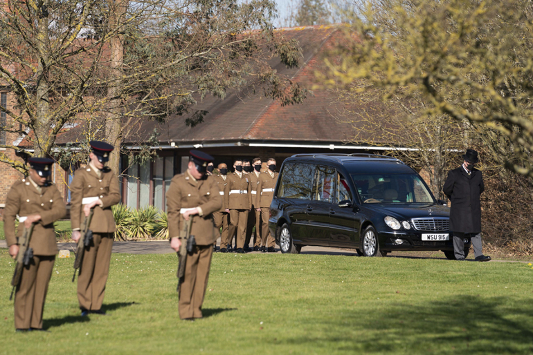 Εξαιτίας των περιοριστικών μέτρων που ισχύουν στο Ηνωμένο Βασίλειο για την αντιμετώπιση της επιδημίας, μόνο οκτώ μέλη τη οικογενείας του παρέστησαν στην τελετή.