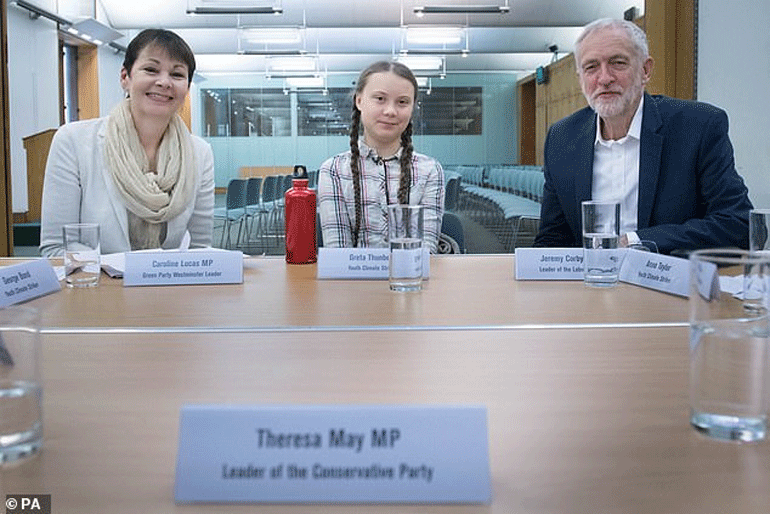 Συνάντηση με τους επικεφαλής των κομμάτων της αντιπολίτευσης είχε σήμερα στο Ουέστμινστερ η μαθήτρια από τη Σουηδία και ακτιβίστρια για την κλιματική αλλαγή Γκρέτα Τούνμπεργκ, που έχει πρωτοστατήσει στις μαθητικές διαδηλώσεις για το περιβάλλον, στους οποίους μετέφερε τα μηνύματα των νέων για τις επιπτώσεις της κλιματικής αλλαγής στον πλανήτη.