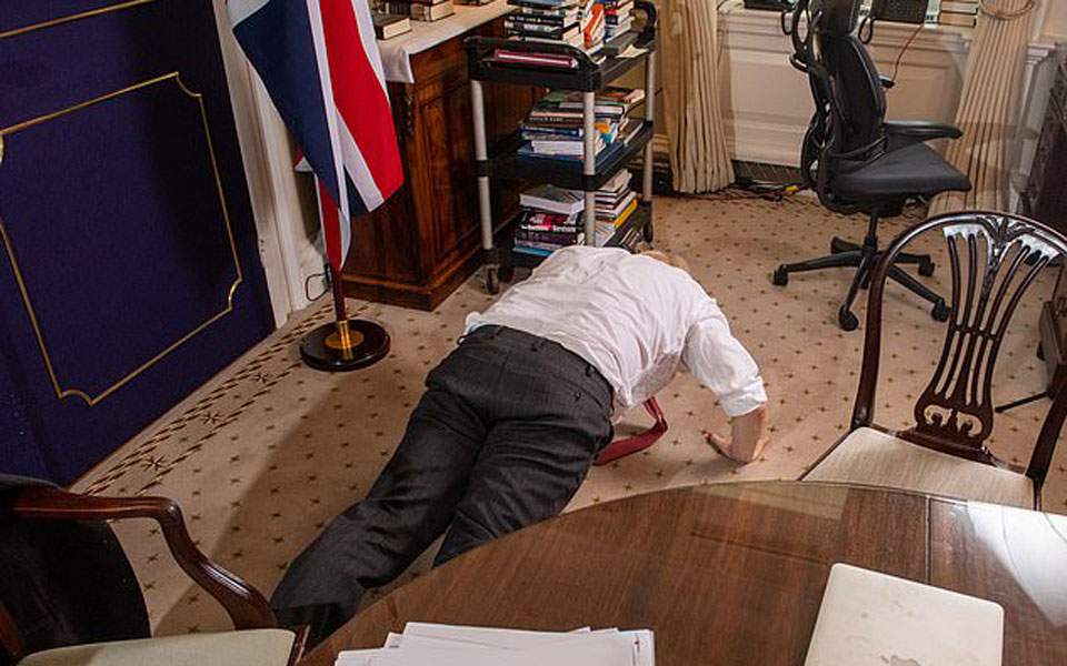 Ο Βρετανός πρωθυπουργός Μπόρις Τζόνσον έπεσε στο πάτωμα του γραφείου του στην Ντάουνινγκ Στριτ για να κάνει κάμψεις κατά τη διάρκεια μιας συνέντευξης που παραχώρησε στην εφημερίδα Mail, η οποία δημοσιεύτηκε χθες Κυριακή, ώστε να δείξει ότι είναι «γεμάτος ενέργεια», λίγους μήνες μετά την νοσηλεία του σε μονάδα εντατικής θεραπείας λόγω κορωνοϊού.
