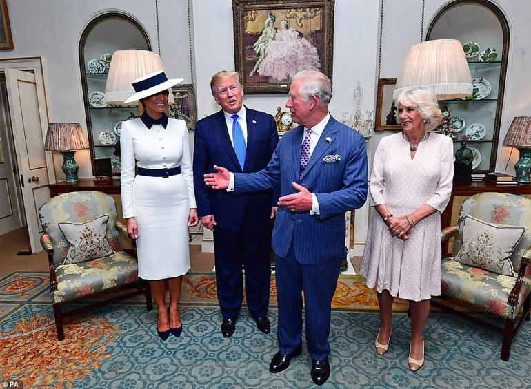 Το κλίμα στις συναντήσεις του προέδρου Τραμπ με τη βασίλισσα Ελισάβετ ΙΙ, τον πρίγκιπα Κάρολο, καθώς και με άλλα μέλη της βασιλικής βρετανικής οικογένειας ήρθε σε αντίθεση με τις αναρτήσεις του Αμερικανού προέδρου στο Twitter, που προηγήθηκαν των συναντήσεων, αλλά και με το περιεχόμενο των συνεντεύξεών του στα βρετανικά ΜΜΕ.