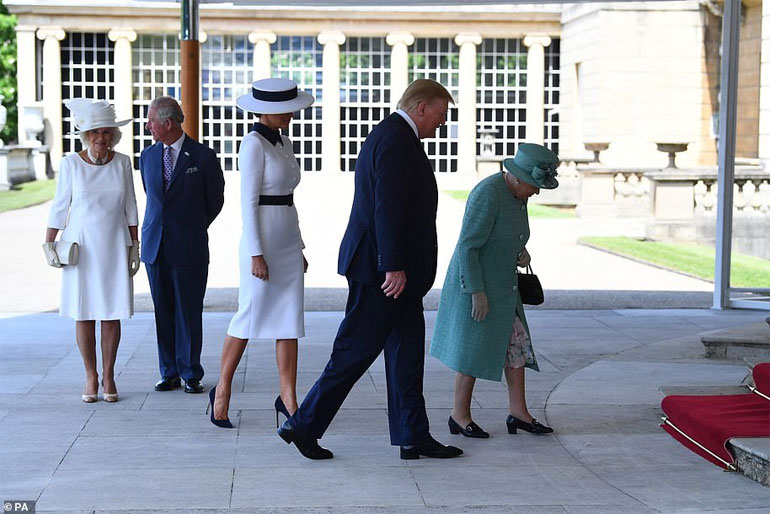 Παρά το γεγονός ότι αξιωματούχοι του Λευκού Οίκου αρνήθηκαν να αποκαλύψουν αν ο πρόεδρος Τραμπ ενημερώθηκε σχετικά με τα βασιλικά πρωτόκολλα πριν από την επίσκεψη, η Τζούντι Τζέιμς, που είναι ειδική σε θέματα γλώσσας του σώματος στη Βρετανία, δήλωσε στην εφημερίδα «The Daily Telegraph» ότι ο Αμερικανός πρόεδρος εμφανίστηκε να έχει μελετήσει το πρωτόκολλο, σε σύγκριση με την προηγούμενη επίσκεψη που πραγματοποίησε στη Βρετανία, τον περασμένο Ιούλιο.
