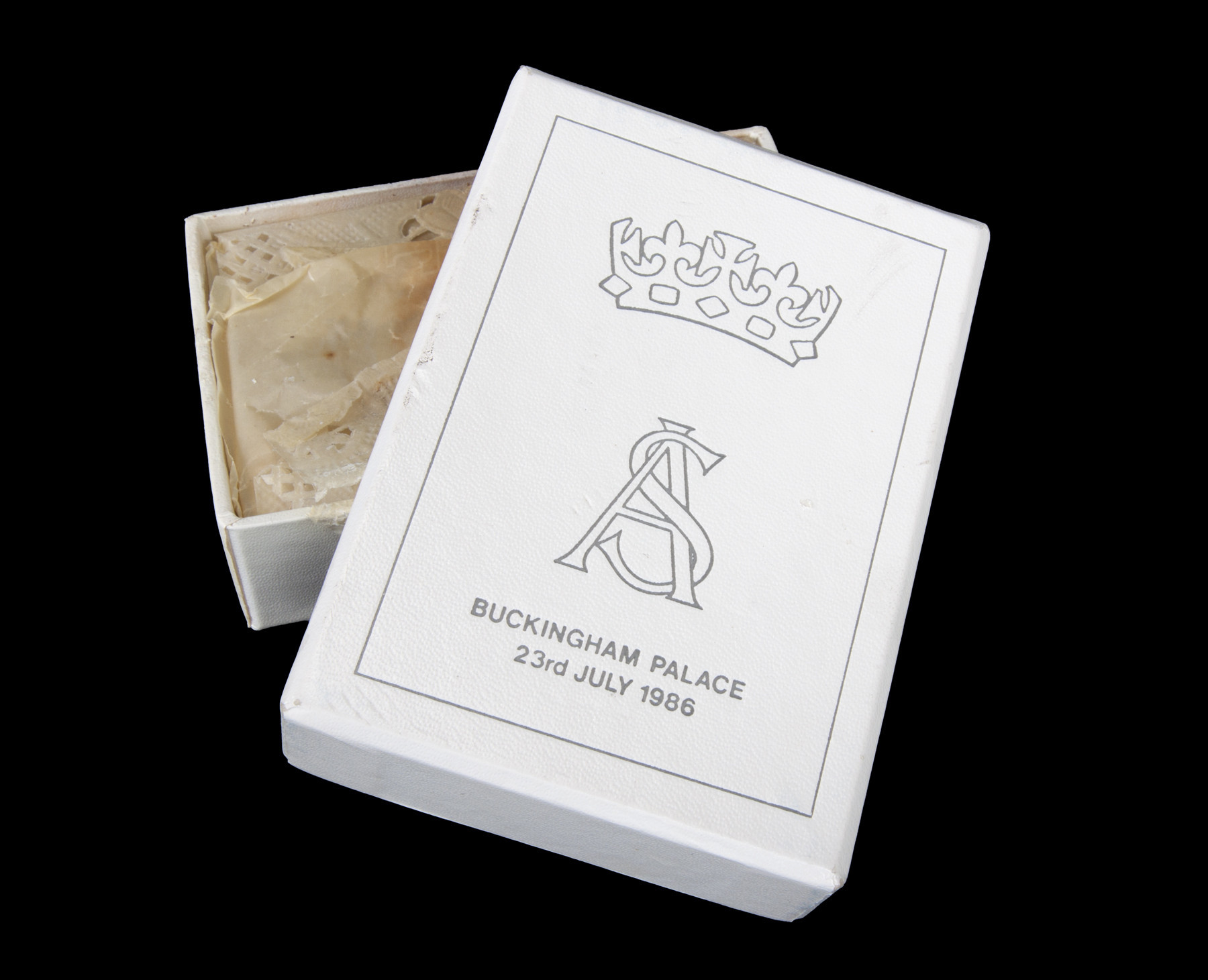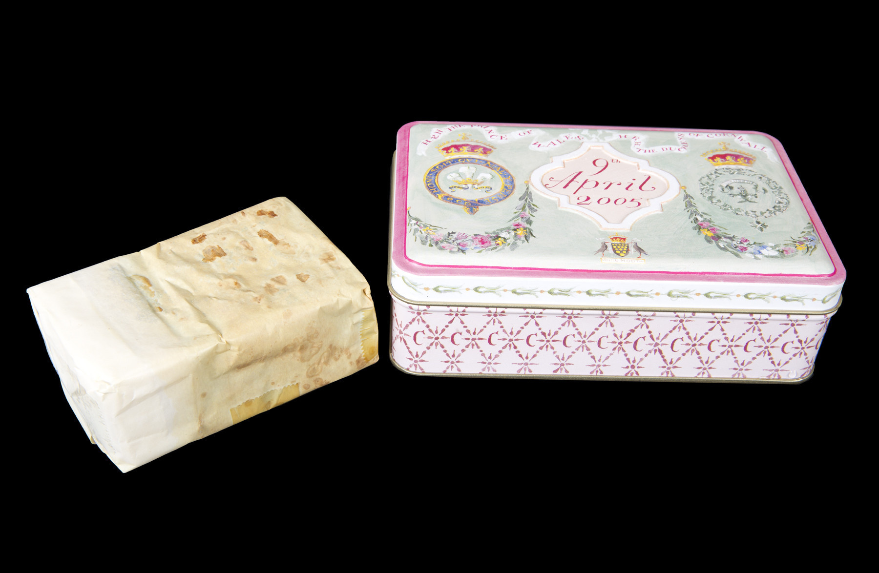 Αυτά τα κομμάτια τούρτας, τα οποία συνοδεύονται από την επισήμανση ότι δεν είναι βρώσιμα, τα συνέλεξε ο Λέοναρντ Μάσεϊ, ο πρώην σοφέρ της βασίλισσας Ελισάβετ Β΄ και τα φύλαξε στην αρχική τους συσκευασία που φέρει το βασιλικό μονόγραμμα.