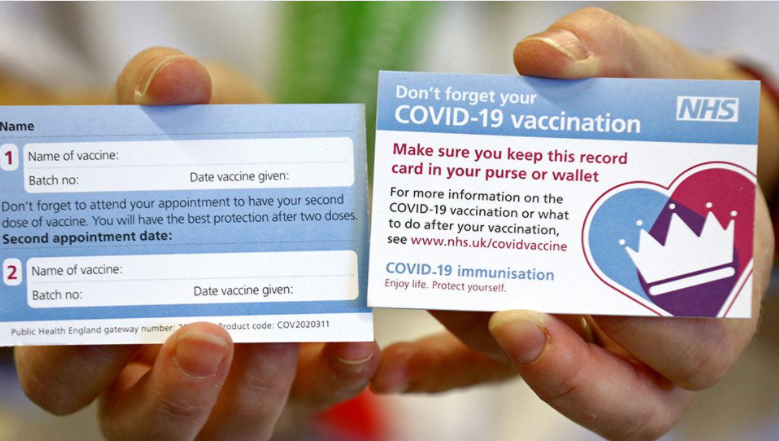 Μια φωτογραφία της κάρτας βγήκε στη δημοσιότητα καθώς το Ηνωμένο Βασίλειο προετοιμάζεται για τον εμβολιασμό από αύριο, Τρίτη 8 Δεκεμβρίου, ενώ η πρώτη παρτίδα του εμβολίου Pfizer / BioNTech έφτασε το Σαββατοκύριακο στη Βρετανία.