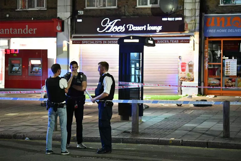 «Η αστυνομία και η υπηρεσία ασθενοφόρων του Λονδίνου ειδοποιήθηκαν περί τις 21.45 τη Δευτέρα (…) για πυρά στην Οδό Κίνγκσμπερι» δήλωσε εκπρόσωπος της Μητροπολιτικής Αστυνομίας, σύμφωνα με την εφημερίδα.