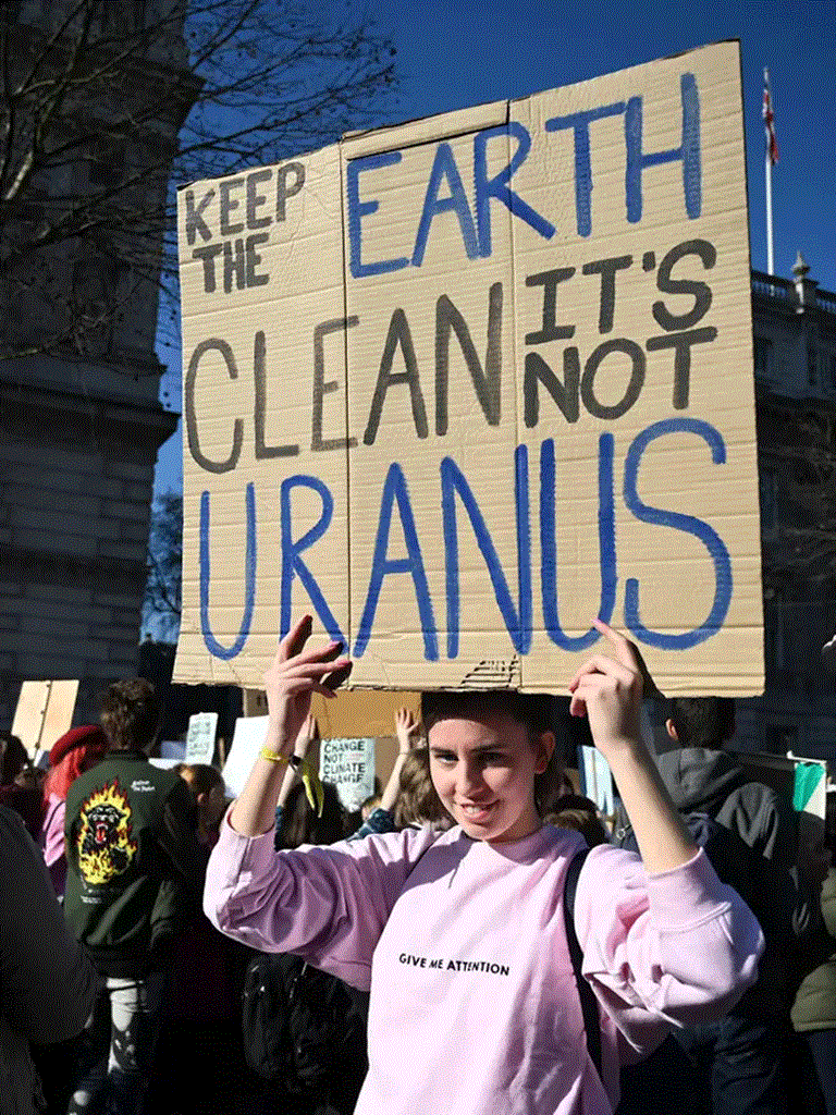 Με συνθήματα όπως «Η κλιματική αλλαγή είναι χειρότερη από την εργασία για το σπίτι» και «Ας ενεργήσουμε τώρα για το μέλλον μας», οι νεαροί διαδηλωτές συγκεντρώθηκαν στον πλατεία του Κοινοβουλίου στο Λονδίνο και σε άλλες πόλεις.
