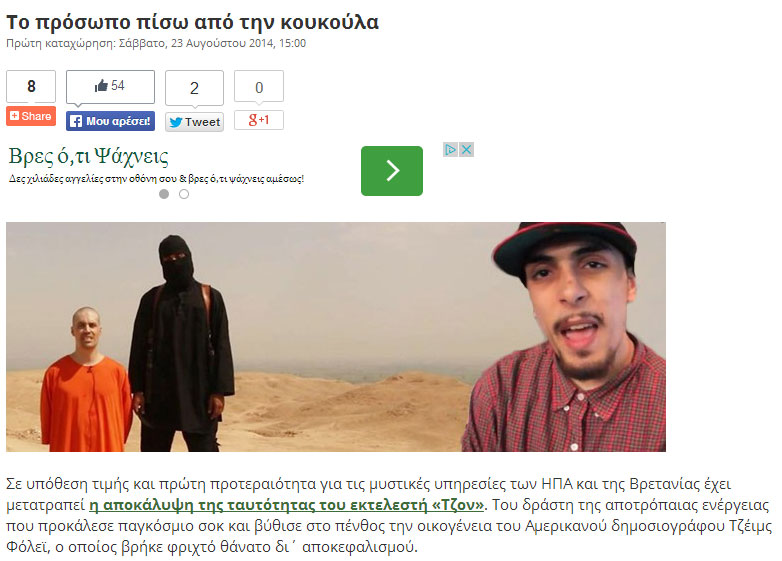 Υπενθυμίζεται πως σύμφωνα με δημοσίευμα της βρετανικής εφημερίδας «Daily Mail» τον Αύγουστο του 2014 -στον απόηχο του αποκεφαλισμού του Αμερικανού δημοσιογράφου Τζέιμς Φόλεϊ-, ο Βρετανός ράπερ Αμπντέλ Μαχέντ Αμπντέλ Μπάρι θεωρείται ο Νο1 ύποπτος για να είναι αυτός ο εκτελεστής με το μαχαίρι.