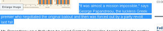 Ο Γιώργος Παπανδρέου, μάλιστα,  χαρακτηρίζεται από το δημοσίευμα ως «ο άτυχος πρωθυπουργός, ο οποίος διαπραγματεύτηκε το αρχικό σχέδιο διάσωσης και ο οποίος, το περασμένο φθινόπωρο, εκδιώχθηκε εξαιτίας μιας “εσωκομματικής επανάστασης”».