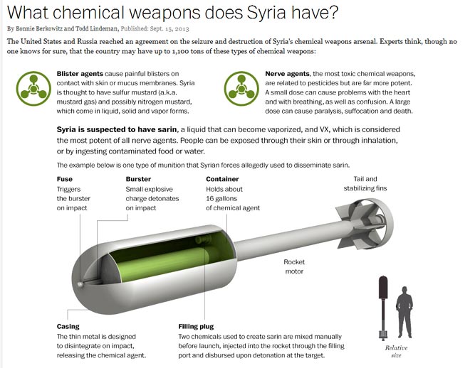 Σύμφωνα με τους εμπειρογνώμονες αυτούς, η Συρία φέρεται να διαθέτει τουλάχιστον 1.000 τόνους χημικά όπλα, εκ των οποίων 300 τόνοι αέριο μουστάρδας.