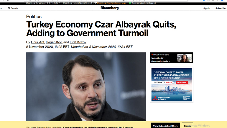 «Κατά τη διάρκεια της διετούς θητείας του Albayrak ως υπουργού Οικονομικών, ο πληθωρισμός κυμαινόταν συνήθως διψήφια, σε σύγκριση με τον επίσημο στόχο της κυβέρνησης για 5%. Οι κρατικοί δανειστές της Τουρκίας προσπάθησαν ανεπιτυχώς να στηρίξουν τη λίρα με αιφνιδιαστικές παρεμβάσεις σε αγορές συναλλάγματος, όπου εκτιμάται ότι έχουν πουλήσει δεκάδες δισεκατομμύρια δολάρια», αναφέρει το πρακτορείο Bloomberg, επιμένοντας πως η ανάρτηση στο Instagram είναι αυθεντική.
