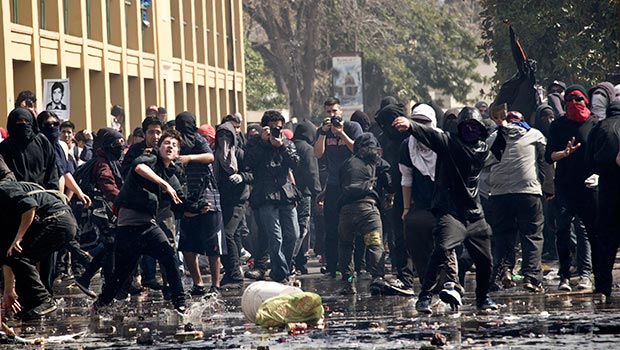 Σύμφωνα με άρθρο της βρετανικής εφημερίδας «telegraph», λίγο μετά την ολοκλήρωση της πορείας ομάδα κουκουλοφόρων έστησε οδοφράγματα και άρχισε να επιτίθεται κατά αστυνομικών.