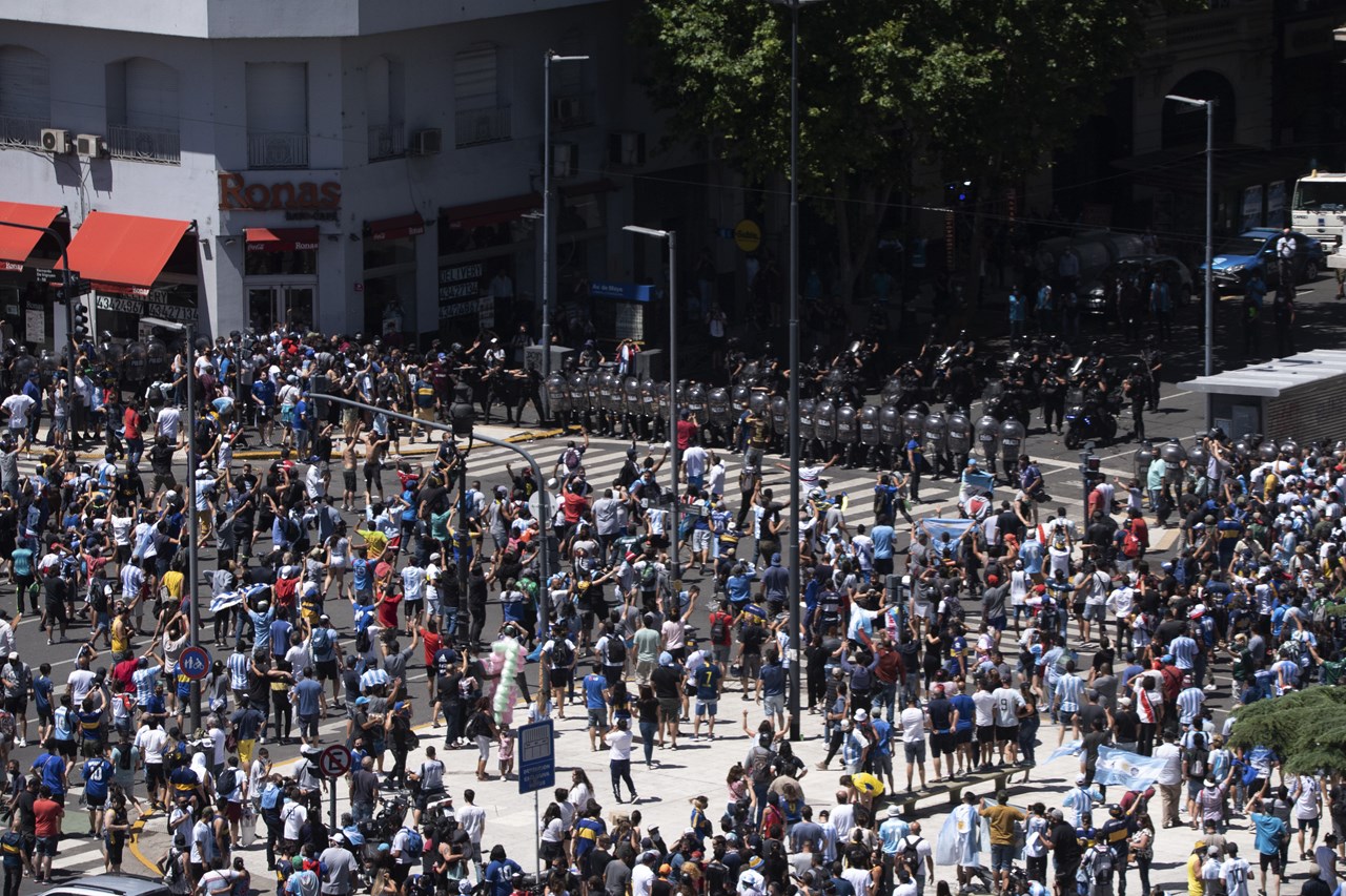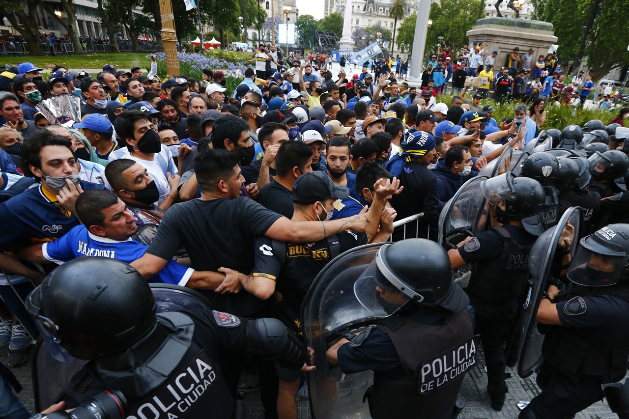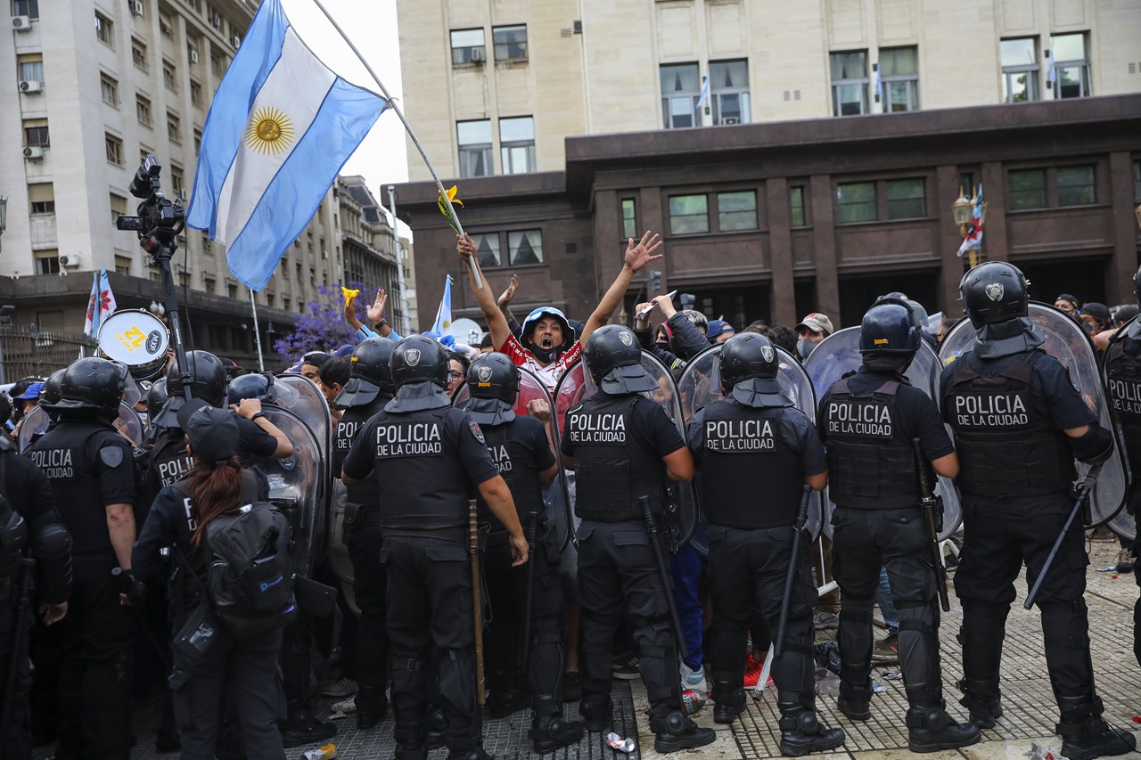 Μερικοί οπαδοί συγκρούστηκαν με τους αστυνομικούς, ρίχνοντας μπουκάλια και κομμάτια της μεταλλικής περίφραξης έξω από τα προεδρικά γραφεία στο κέντρο του Μπουένος Άιρες.