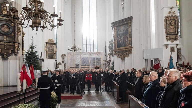 ιλιάδες άνθρωποι είπαν το τελευταίο αντίο στον δήμαρχο του Γκντανσκ Πάβελ Αντάμοβιτς στην κηδεία του, που τελέστηκε σήμερα, λιγότερο από μια εβδομάδα αφότου δολοφονήθηκε κατά τη διάρκεια μιας φιλανθρωπικής εκδήλωσης.