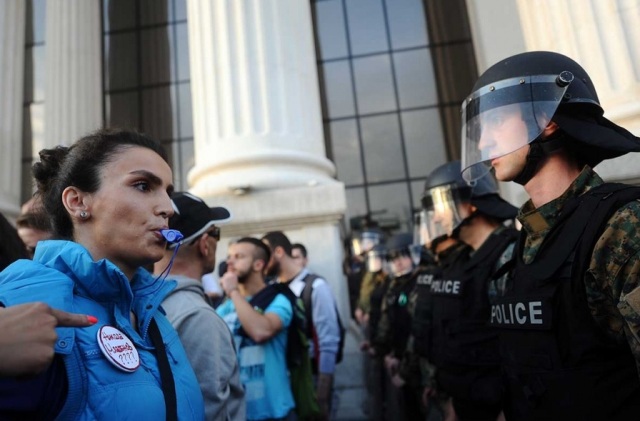 Οι διαδηλωτές προειδοποιούν, μάλιστα, ότι θα πραγματοποιήσουν κατάληψη σε κεντρικούς δρόμους των Σκοπίων μέχρι να δεχθεί ο Γκρούεφσκι να παραιτηθεί.