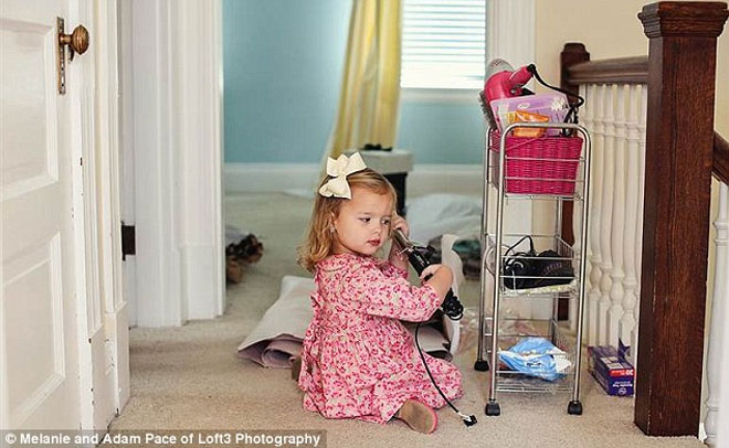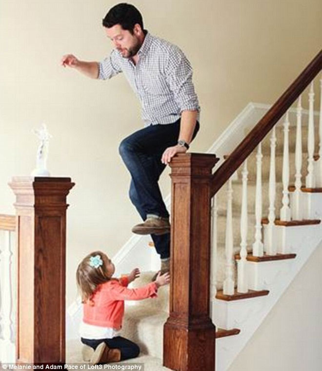 Έτσι, τράβηξε φωτογραφίες με την τριών ετών κόρη του, στις ίδιες ακριβώς θέσεις και πόζες που είχε φωτογραφηθεί πριν από τέσσερα χρόνια με τη σύζυγό του.