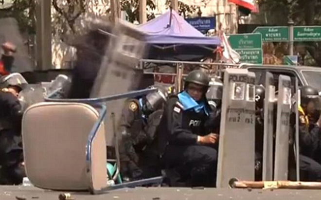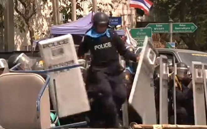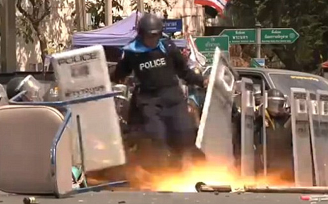 Καταστροφικές συνέπειες φαίνεται πως είχε για έναν αστυνομικό στην Ταϊλάνδη η απόπειρά του να κλωτσήσει μια χειροβομβίδα που έπεσε κοντά του, κατά τη διάρκεια των διαδηλώσεων που συνεχίζονται εδώ και μήνες στην πρωτεύουσα Μπανγκόκ.