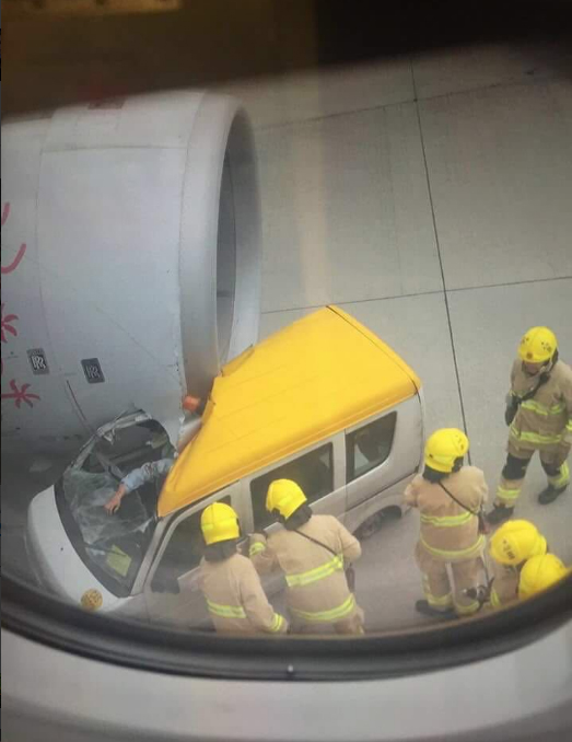 Ένα αξιοσημείωτο τροχαίο σημειώθηκε την Πέμπτη στην πίστα του αεροδρομίου του Χονγκ Κονγκ, μεταξύ ενός μίνι βαν και της… τουρμπίνας ενός αεροσκάφους.